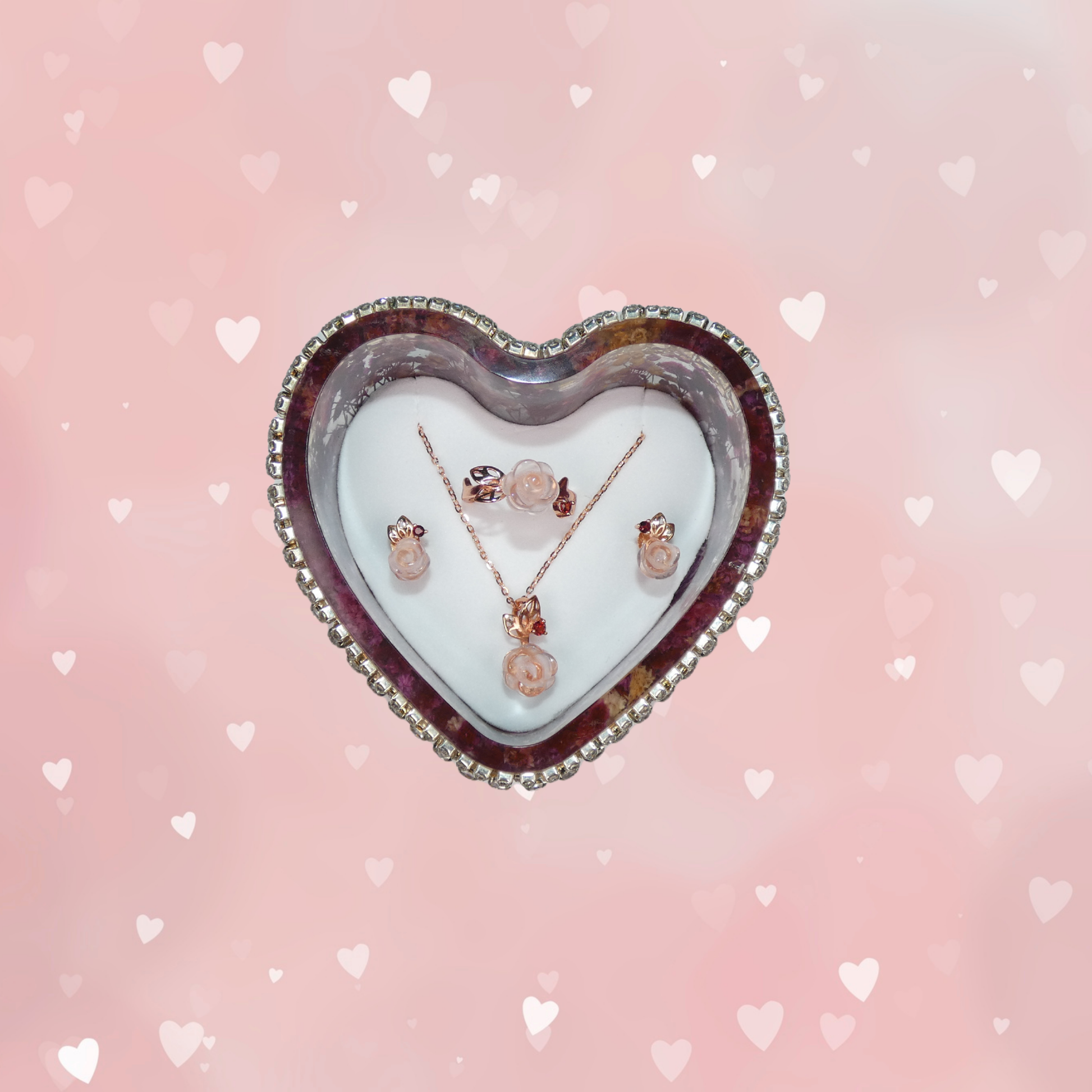 Indulge in the irresistible charm of this exquisite S925 3-piece jewelry set. Crafted from radiant 925 sterling silver and luxuriously coated in shimmering 14K gold plating, the necklace, ring, and earrings sparkle with ethereal pink quartz stones, nestled within an elegant floral design and held by refined claw settings. Whether marking a wedding, engagement, or special gift, or elevating your everyday style, this set embodies timeless luxury and feminine grace—designed to captivate, enchant, and inspire.